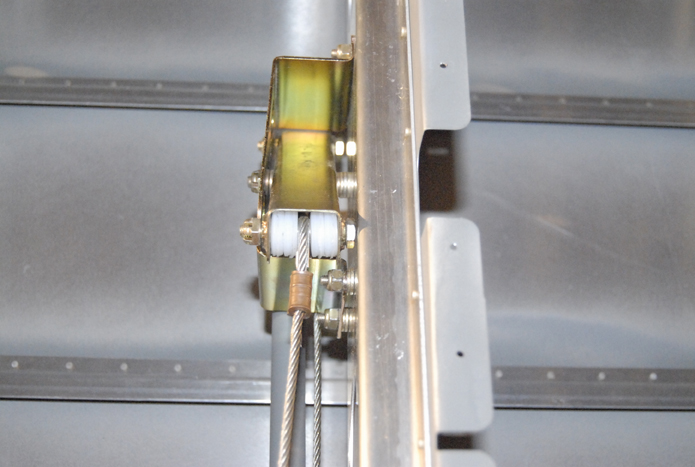 Aileron bellcrank showing nut position for easy inspection and easy cable replacement. |